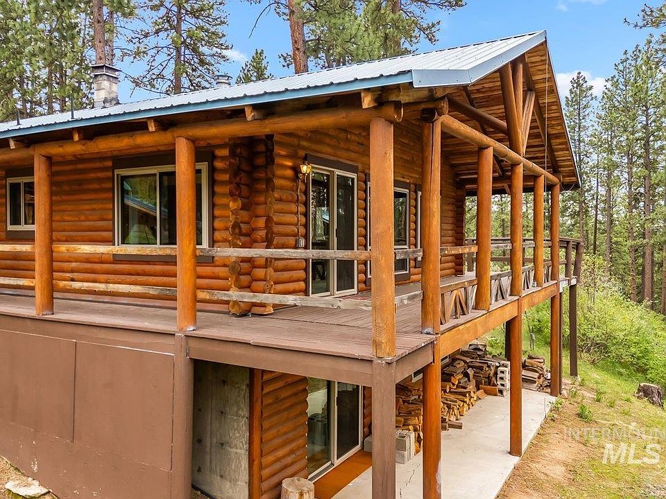 The perfect mountain retreat! This tranquil, secluded log home is perched on a .84-acre lot in a quiet cul-de-sac, bordering BLM land within a premier private gated community. Located in the highly desirable Duquette Pines Subdivision of Historic Idaho City, you're just 42 miles from downtown Boise. This 3-bedroom, 2-bathroom, 2296 sqft home has been recently updated with over $40,000 in upgrades. Enjoy breathtaking views from the covered wrap-around porch, perfect for relaxing and soaking in the natural beauty. The finished 846 sq. ft daylight basement is perfect for entertaining, featuring a cozy wood-burning stove and pool table. There's also access to a spacious area beneath the home, ideal for a root cellar or storage space. With well-maintained roads year-round, you'll enjoy the scenic drive or daily commute, whether seeking a full-time residence, weekend getaway, or vacation home. Don't miss this chance to see this incredible property and start living your mountain dream today!