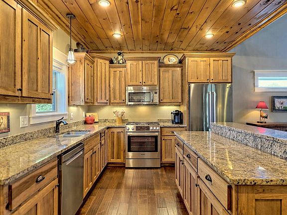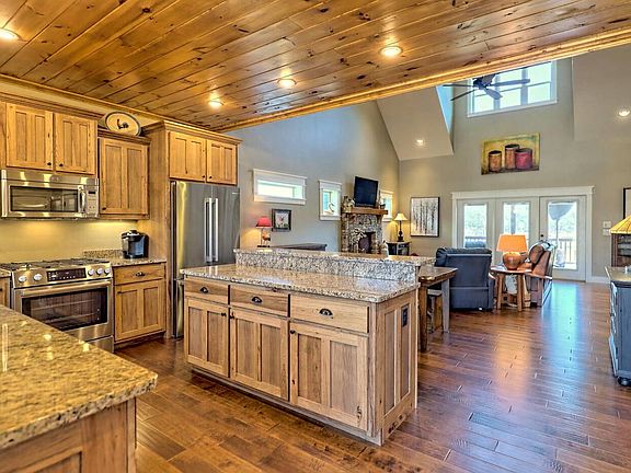 A rare opportunity! Lake living at a fantastic price point! This meticulously maintained craftsman-style cottage, w/ year-round mountain views & DEEP WATER boat slip on Lake Chatuge, is located in the desirable Water's Edge Community w/in minutes to downtown Hayesville, NC. The low-maintenance appeal shows in the exterior's natural rock & pristine Hardiplank siding PLUS HOA-maintained landscaping and amenities. The well-planned interior has it all; hardwood flooring, upgraded stainless appliances, upgraded gas fireplace, granite, high ceilings, "smart home" capabilities with fiber optic internet, tile master bath, main floor 1/2 bath, plus a full bed & bath upstairs. This home seamlessly merges outdoor living & indoor ambiance with natural light and a large, inviting covered porch with wood-burning fireplace. Enjoy the lakefront pavilion and hop on your boat in the covered boat slip with FloatAire boat lift. With this home, you can fully enjoy lakeside living at Water's Edge On Chatuge!
