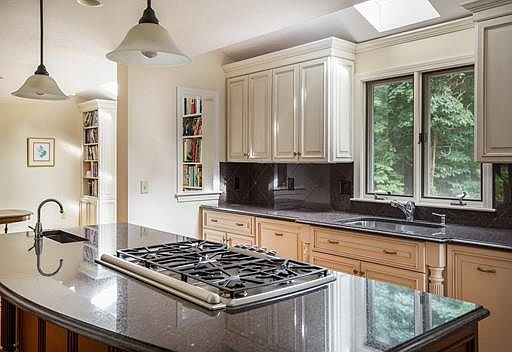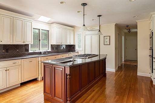 Stately Brick Front Colonial one owner home offering great curb appeal & sited on a picturesque, well landscaped acre lot w/ sprinkler system. Updates include: 2006 Kitchen & Master Bath Renovation, 2008 Roof, 2018 Carpet Master Suite & 3 secondary Bedrooms. Large Kitchen offers a center island, granite counters, Thermador appliances to include a gas cooktop, refrigerator, dishwasher, microwave, wall oven & walk out bay dining area w/ built-ins! Beamed Family Room w/ masonry fireplace opens to enclosed Porch w/ cathedral ceiling w/ wood stove! Pretty Living Room or potential Office w/ masonry fireplace. Dining Room w/ crown molding, chair rail & wainscoting. Back hall provides large walk-in pantry; half bath & access to garage. Gleaming hardwood floors. Master Suite w/ Bedroom, Sitting Room & 2008 Master Bath renovation complete w/ tiled shower, double sink vanity w/ granite, soaking tub & tile floor. Good size secondary Bedrooms w/ Main Bath. Expansion capability w/ 3rd floor walk-up!