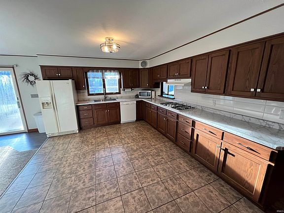 Quick occupancy is available with this three bedroom, two bath, and two car attached garage, all brick, ranch home! Located on the riverfront inside the town limits of North Webster, great for paddleboarding, kayaking and canoeing! Almost twenty-five hundred square feet of finished living space, all on one level! Open concept kitchen with gas cooktop and plenty of counter space along with built in double oven and pantry area! Large family room with gas log fireplace, good sized dining room, both overlooking the river and the over one acre lot! Whole house generator and all appliances will stay!