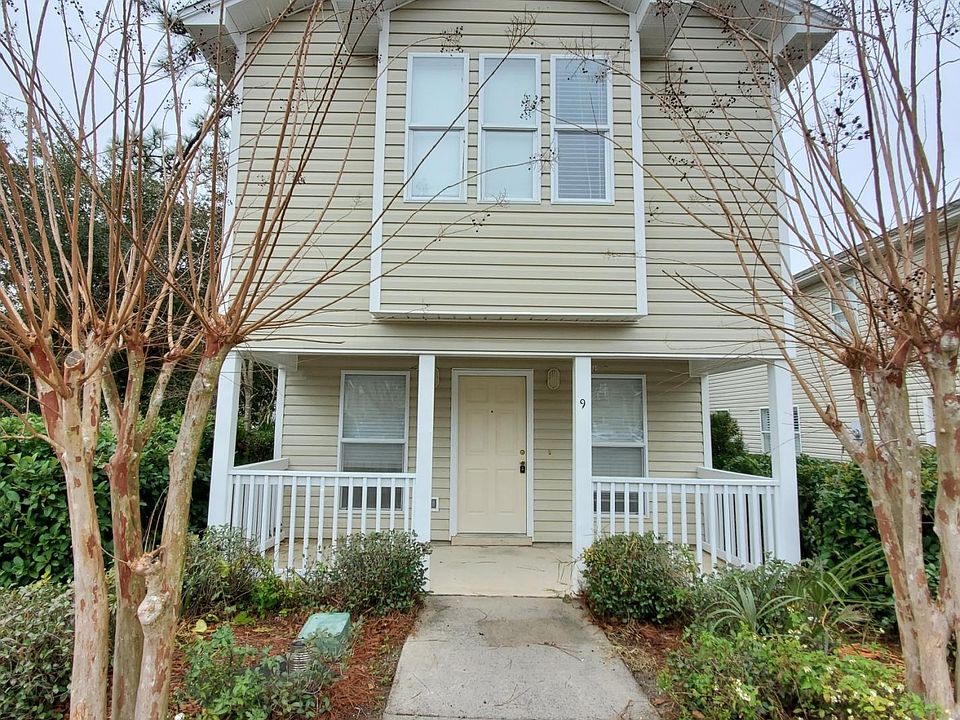 Adorable two story cottage style home for sale in the desirable subdivision of Enchanted Estates. This coastal style property sits on a large corner lot and features fresh paint and updated laminate flooring. Stainless steel appliances, open living/dining/kitchen combo with breakfast bar. Lots of cabinet and countertop space. Storage under the stairs. Large pantry. Half bath downstairs. First level master bedroom and bathroom! Upstairs you will find a spacious laundry room, two full bedrooms, and one full bath. This property would make a fabulous primary home, vacation home, or rental property! Just a short drive to the beach! Hurry, this one won't last long!