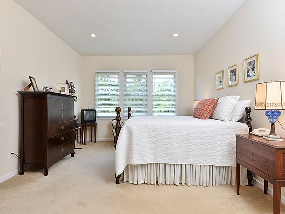Desirable "B" model Pinehills townhome, an end unit with a private wooded setting. 3 bedrooms, 3.5 baths. Open floor plan offers great room w/ cathedral ceiling, gas fireplace, & wall of windows.. Bright eat-in kitchen w/ center island and cozy den with fireplace. Features 1st floor master suite w/ private bath & 1st floor study. 2nd level includes guest suite & loft. Finished LL w/ bedroom,full bath, & game room.Outdoor living with farmer's porch and expansive deck. Move-in ready!