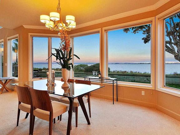Exquisite, custom-built, bay front home w/dramatic views of SF and bay fr multiple vantages through walls of windows. Features rare ground floor au pair/guest wing, private/lush internal courtyard, dazzling master suite, open plan w/ cook's kitchen, huge fam rm. Near SF ferry, sought-after schools.