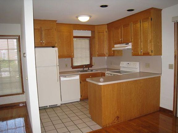 Beautiful townhouse apartment with lots of space in quiet residential neighborhood. 3 floors, 2 bedrooms, 1 full bath with two washing areas. Bedrooms have vaulted ceilings and skylights. Large closets in both bedrooms and in living area, as well as small closet on third floor landing and in bathroom. Private deck facing back of building is accessible through the dining area via sliding glass doors. Full unfinished basement area with washer and dryer.