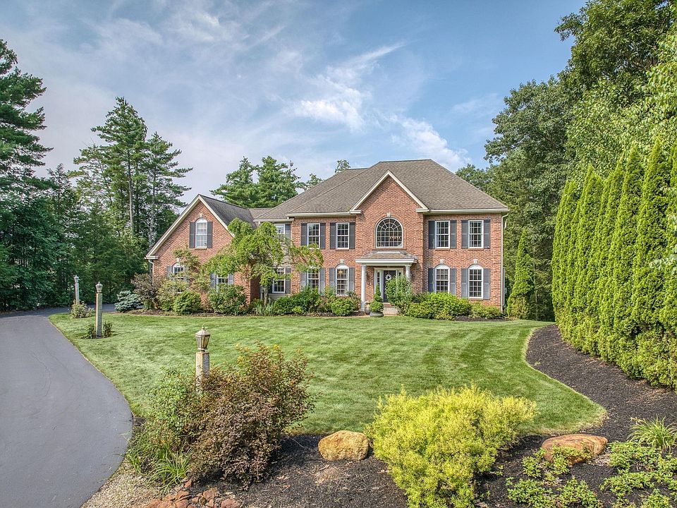 Gracious brick front Colonial in the fabulous Pulpit Estates cul-de-sac neighborhood; private land adjoining Pulpit Rock conservation land; add a POOL! Quality-built by KRD/Dionne with an open floorplan and custom millwork throughout. The 2 story foyer features a turned staircase, direct access to the formal dining room & living/office room. The family room is 19.5 x 15.3 and is open to the chefs center island kitchen which offers a WOLF gas range, sub-zero fridge, seating at the center-island, granite surfaces plus a breakfast room surrounded by windows and French doors leading to the 12 x 40 wrap-around deck. Also on the first floor is a private home office, a 3/4 bathroom, the laundry and mudroom with direct access to the 3 car garage. Transition to the 2nd floor living spaces.....enjoy the light-filled sitting room landing overlooking front yard. The private primary bedroom features a rainfall steam shower with glass door, spa bath and a very spacious walk-in closet. The 3 other bedrooms share a full bath with dual vanity. The bonus room is perfect as a playroom or media room or 2nd office. The walk-out lower level has French Doors, is prepared for a bathroom and could be finished, and consider the walkup attic too. Systems include auto generator, irrigation and security systems. Great cul-de-sac neighborhood. TOP BEDFORD SCHOOLS/ Riddle Brook. VISit today! Showings begin Saturday 7/22 after 11am; Open House 7/23 12-2.