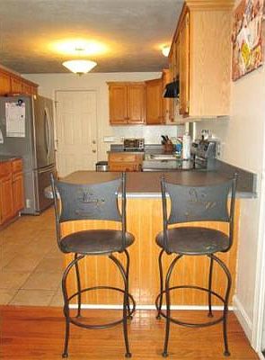 Sought after neighborhood with this nice 3 bedroom Colonial has flexible open floor plan. The dining room is currently used at a playroom and the spacious fireplace living room is used as a living/dining combo with sliders to the deck. Highlights of the home are the gleaming hardwood floors, new berber carpets in the halls and stairways, oak cabinet kitchen with breakfast bar, cathedral ceiling bath with skylight. walk-in master closet with easy access to the attic. The finished basement makes it a great place to entertain and watch the Patriots play in the 16x22 family room with wet bar. Walk out access from the family to the two patios and fenced in yard. The 10x10 storage shed and play yard system will stay. Great commuter access to all major routes.