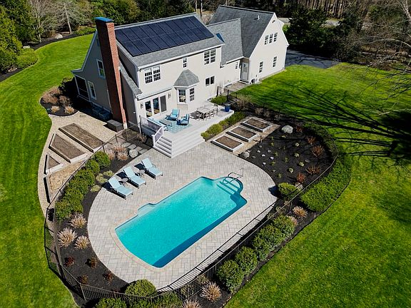 Welcome to refined country living at its best! Tucked away from the hustle and bustle off a scenic road, this pristine property offers quality, privacy and a layout suitable for life’s many stages. Built by the Great Room Company – whose signature design elements are embodied in this home – you will appreciate the open layout, exposed ceilings and abundance of natural light. Soaring entryways, many built-ins and custom finishes add a touch of elegance to the home's ambiance. Meticulously cared for and with many recent updates, just move yourself in to enjoy summer in your new home. Enjoy morning coffee on your deck while watching the sun rise, take a relaxing swim midday, then grill poolside as the sun sets before moving to the screened porch for a leisurely dinner. The private grounds are a gardener’s delight featuring raised beds with irrigation, mature landscaping and a lush level lawn. Hosting gatherings is a breeze whether inside, out – or both – and cooks will appreciate the new custom designer kitchen as they move seamlessly between creating and entertaining. During the work week, select home office locations and when the day is done, the spacious Primary Suite welcomes you with its thoughtful design and relaxing soaking tub as you say goodnight to another day in your own paradise. Conveniently located near local beaches, highways and only an hour from Boston, this home is accessible to both leisure activities and urban offerings while maintaining its peaceful setting.