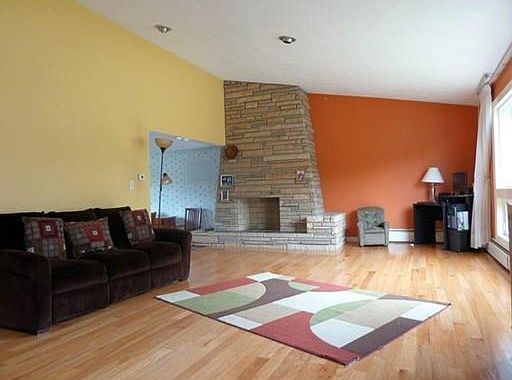Beautiful contemporary style home with many exceptional features in the Robin Hood area of Stoneham. Home features gleaming hardwood floors, oversized living room with cathedral ceiling and stone fireplace. This multi-level home has loads of character. First lower level has an office or den area and a half bath. 2nd lower level has a large fireplaced family room and also features a second kitchen. The upper level also has the three bedrooms and the full bath. Situated on .23 acre lot. Exterior has stone, redwood and clapboard siding. All part of what makes this home unique. Do not miss!