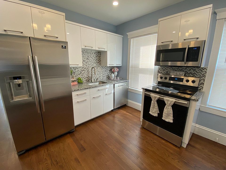 Showings: TUESDAYS 6:30pm - 7:30pm SATURDAYS 12:00pm - 1:00pm Tastefully renovated, 3 bed unit in the heart of Dorchester. New kitchen ties together modern; glossy, white cabinets with White Mist granite countertops; gray Herringbone mosaic backsplash; brushed nickel hardware; Samsung stainless steel appliances; and recess lighting for an impeccable finish. The completely renovated bath features exquisite Carrara marble walls; Chevron mosaic niches; hexagon marble flooring; luxury rain shower system; soaking tub; sliding frameless tub door with Roller Disk Technology; Delta Nightlight toilet; and high-end navy blue vanity with Carrara marble countertop for a perfect contrast. The bedrooms offer good size closets and plenty of windows allow for abundant, natural light. Early American stain on red oak floors throughout this unit wraps up a stellar living experience. Nest Wi-Fi thermostat, central heating, and Aiphone intercom system offer smart-living amenities. Coin-op laundry in basement. Area amenities include: Walk score 76 (Very Walkable). Transit score 77 (Excellent Transit). Walking distance to ASHMONT MBTA Station with easy access to Bus routes 21 and 26. Short 5-min. drive to I-93, Neponset Trail, and Pope John Paul, II Park, nearby schools, 5 miles from UMass Boston. Conveniently located near Lower Mills, Adams Village, Gallivan and Morrissey Blvd. Featuring restaurants like Dorset Hall, The Industry, Molinari's, Landmark, Lucy's, American Provisions market, coffee shops, boutiques, Super Stop & Shop, CVS, Staples, Walgreens, Boston Sports Club, Planet Fitness, Carney Hospital, Santander Bank, Bank of America, Verizon Wireless, etc. Length of Lease term negotiable...