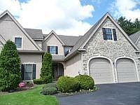 Rare opportunity to own a lovely Carriage home in this popular 55+ community. Owner says, you may qualify even if you're not 55, so be sure to call for details & check it out. Enter by nice front porch, lovely entry features a 2-story foyer and turned HW staircase, hardwood flooring in foyer, hall, kitchen & dining room. Gorgeous kitchen with 42" cabinets, beautiful island, granite counters & nice breakfast room. Large Laundry/mudroom leads to garage. Beautiful open floorplan, dining room opens to great room with FP, vaulted ceiling and skylights. 2 doors with Phantom screens opens to 28 x 12 Trex deck with a beautiful view. Home backs to City Parkland with walking trails. Front of home has view of lovely pond. First floor master also offers beautiful view of parkland and has 4-piece master bath with whirlpool tub. Upper level has family room/loft open to the great room below. 2 bedrooms with one being connected to full bath. Walk in attic with storage area and good closet space throughout.