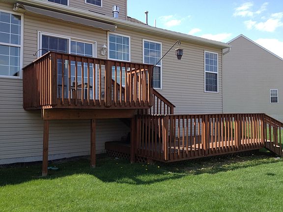 Incredibly convenient living! This beautiful house has a spacious floor plan, custom kitchen with 42" cabinets, tile floors, stainless appliances and Breakfast bar, plus a stunning breakfast area/dining room with a fireplace, skylights, and a wall of windows, as well as glass sliders out to the deck and the beautiful view! The formal Great Room/Living room with 9' ceilings, crown moldings and huge fireplace greets you as you enter; there's a main floor master suite that also includes a fireplace, walk-in closet, and direct access to the full bathroom on the main floor. Upstairs are two more spacious bedrooms (each with walk-in closet, one with direct access to the upper level full bathroom), while the unfinished basement is HUGE with an additional 1,100+ sq. ft. for future potential. There's a 2-car garage, a 2-tier deck - and have we mentioned the private backyard and beautiful view PLUS - all your lawn maintenance & snow shoveling taken care of. Don't miss this one!