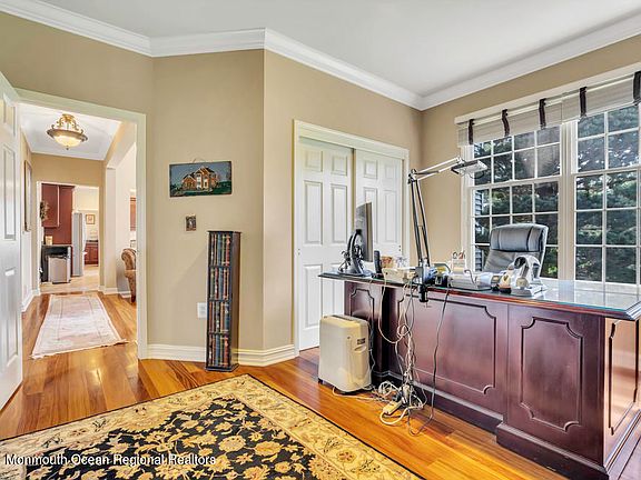 Opportunity Knocks!! Immaculate 5 BR, 2.5 Bath Colonial on One Acre in the highly sought Woodhollow development. This corner lot property on quiet neighborhood features Two Story Entrance, Brazilian Cherry Hardwood floors, Decorative moldings, First Floor Office, Upgraded Center Island Kitchen w/ Granite Counters and Stainless appliances w/ French Door out to private Patio overlooking Fenced Salt Water In Ground Gunite Pool, Two Story Great Room w/ Gas Fireplace, Four Generous Sized bedrooms on Second Floor including Master Bedroom Suite w/ Cathedral Ceiling, His n hers Walk In closets, and Master Bath w/ skylight, Full Finished Basement w/ Office and Rec Room, Two Car Garage and zoned for popular Freehold Township High School. The perfect Manalapan choice for you, the next Owner