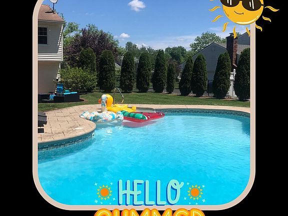 Ready for the Summer?! Plenty of pool fun for you and your family in this magical backyard! This home offers 4 bedrooms, 2.5 baths, a pride of ownership throughout the home! Kitchen w/ Kraftmaid cabinets, center island, granite, SS appliances. Sizable Dining room & Living room with huge Bay window. Primary bedroom has walk-in closet and full bath. Downstairs offers additional bedroom, family rm, laundry facilities. Home has so much more.. crown molding, custom trim, wrought iron railings, hardwood floors, recessed lighting, mosaic tile wall in full bath, 2-car garage, and most of all your Saltwater inground pool with waterfall! All on a level lot, with a treehouse for the kids, Tiki bar for the adults and perfect for entertaining!