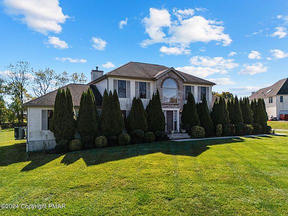 Up to the 2nd floor find a large landing, the 2nd Owner's Suite complete with big walk in closet, bath with huge tub, separate shower stall, dbl vanity and linen closet. Two more generously sized bedrooms w/dbl closets and additional full bath complete the 2nd floor. HUGE full, unfinished basement, in case you'd like more living space in the future. Water heater is five years old. Economical heat pump and central air for your comfort.