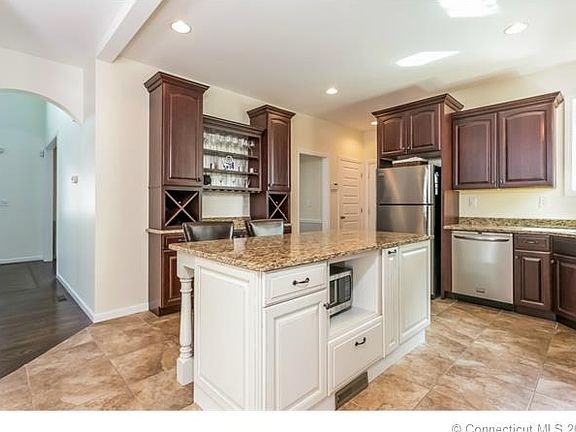 Pride of Ownership abounds in this 4 bedroom Maple Hill beauty offering over 3600 square feet! Main level offers grand foyer, 9' ceiling heights, gourmet kitchen with cherry cabinetry, center island, stainless appliances, gas range and granite counter tops, family room with fireplace, formal dining room, office, powder room, hardwood flooring thruout and crown moldings. Upper level boasts master bedroom with full bath appointed with luxurious claw foot soaking tub, double sinks and separate shower, double walk in closets and vaulted ceiling heights, 26' bedroom with exposed beams and vaulted ceilings, 2 additional bedrooms, 2nd full bath and hardwood flooring. The lower level features 38' game room with bar, woodstove, half bath, access to 3rd garage, and lovely level rear yard. Additional amenities include steel beam construction, 2 car attached garage, oversized 3rd car garage under, central air conditioning, and natural gas heating. This spectacular home is nestled in the sought after Fawn Meadow neighborhood offering tree lined streets and under ground utilities just minutes to Metro North, Interstates 84 and 8 as well as routes 63, 68 and 69 allowing easy commute to Fairfield, Westchester, Hartford and lower New Haven counties!