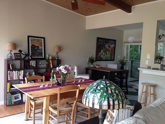 Things to love about living here: 1 mile from the coolest town but private and quiet; tree house living is awesome; private hot tub and outdoor shower; new decks and gardens; outside living in good weather, but when you're inside, it's bright and has beautiful outdoor views. For potential buyers: new standing seam roof, new insulation and windows, heating and hot water systems, private road recently paved, new french drain into driveway, new retaining walls properly drained, extensive new gardens with irrigation system, bottom storage platform (great tent platform space for overflow guests!). Stays cool even on HOT days. Private quiet road. PROPERTY may be for sale in the near future if interested. Lease duration is 1-4 months. Leasee is responsible for water*, gas/electric* - *utilities that when you pay for it, you're more likely to conserve). Owners take care of bi-weekly housekeeper and trash/recycling.