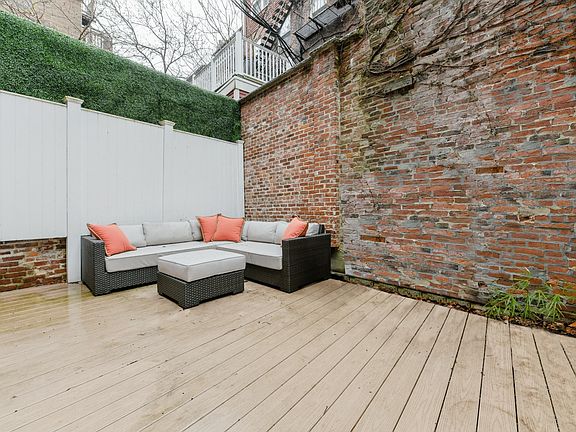 Private showings on request, or group showing on Wednesday 11:45-12:45pm. Sophisticated parlor duplex in a classic Bay Village brownstone with high-end designer finishes. The parlor-level features a warm living/dining space with marble fireplace and plantation shutters. A beautifully appointed kitchen features custom inset cabinetry, brass hardware, waterfall-edge marble counters, and SubZero/Wolf appliances. A full bath and smaller bedroom with French doors lead to a large private patio. The lower-level primary suite offers a spacious layout, double shower, and generous closets. Additional features include in-unit laundry, central A/C, and de-leaded compliance. On-street parking with Bay Village permit; discounted garage options available for residents. First, security and broker fee due at lease signing. Available for a lease starting 7/1. First, Security and Broker Fee due from incoming tenant.
