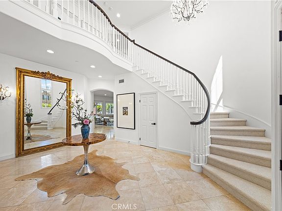 Nestled behind the double gates of Oak Knoll Summit, this stately residence sits on a prime corner lot of over a quarter acre, backing directly to the serene Riley Wilderness Park. Perfect for entertaining, the expansive outdoor space includes multiple patios, overhead heaters, a deluxe BBQ center, and a cozy outdoor fireplace. The private pool, complete with a swim-up bar, granite accents, and waterfalls, is fenced for child safety, while a separate spa sits next to a grassy side yard. As you step through the beautiful dual entry doors, you're greeted by a grand formal foyer with soaring ceilings, a sweeping staircase, and an elegant chandelier. The main level boasts a large living room with a fireplace that opens to a formal dining room. The gourmet kitchen is a chef's dream, featuring a huge breakfast bar, banquette seating, professional-grade stainless appliances, a walk-in pantry, a spacious center island with a prep sink, and ample counter space. The adjacent family room is equally impressive with its fireplace and built-in entertainment center spanning almost an entire wall. A guest bedroom with a full bath, along with a half bath, completes the main floor. Upstairs, a second bonus family room offers stunning views, and you'll find three guest bedrooms each with its own bathroom. The master suite is a luxurious retreat, featuring a cozy fireplace, an additional wall of closets, a spacious walk-in closet, a spa-like bathroom, and breathtaking views to wake up to. The home is freshly painted, brightening the space and giving it a modern feel. The kitchen has been remodeled with a new island, all cabinets have been repainted, and new carpet throughout the home ensures a clean and polished look. The oversized 4-car garage, equipped with built-in cabinets and overhead racks, offers ample storage for any family. This home seamlessly blends elegance, comfort, and function, creating the perfect space for family living and entertaining.