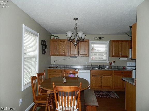This three bedroom, 1 bathroom ranch is located close to town. An open kitchen area features and abundance of cabinet space as well as an eat in area. The fenced in yard has a patio area directly off the back of the home.