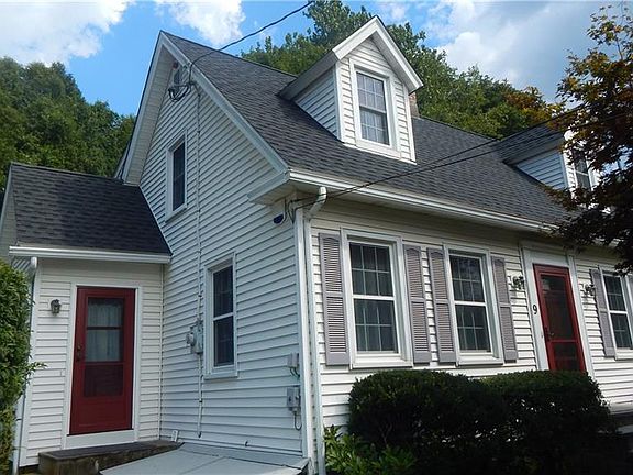 A MOST CHARMING CAPE! This solid, well maintained cape cod home is ready & waiting for you with so many valuable updates AND includes an apartment rental with mini kitchen, full bathroom & open living area above the spacious two car garage - great for possible in-law setup! Freshly painted throughout, just refinished hardwood floors with inlay, large living room with pellet stove, and nostalgic formal dining room with built in hutch. Kitchen features nice appliances and wooded walk-in pantry with desk. The stunning sunroom is light, bright, relaxing and includes a pellet stove for four season enjoyment. New architectural shingle roof in 2015 with cost saving solar panel system to keep it green! Excellent mechanicals including home generator wiring. Lower level includes a playroom with Corning acoustical wall panels, just bring the flooring of your choice. Great storage & workshop areas. The pretty landscaped lot hosts cheerful flowers, perennials, plants and trees. Two storage sheds will store your tools & mower, and the heated aboveground pool with deck make this a wonderful home for a staycation! Public sewer connected, great location close to New Milford Town Green and all that this lovely country town has to offer. A truly special property all around, available TODAY at a remarkable price. Dont miss this one!