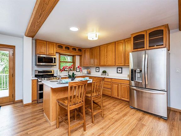 Cozy ranch home nestled on a cul de sac with 2BD/2.5BA with spectacular wooded views. Primary suite with hardwood floors in the bedroom and LVP in the en-suite bath with corner tub and plenty of storage. Large 2nd bedroom with hardwood floors. Kitchen features, SS appliances, including double oven, fridge and dishwasher. Enjoy the spacious family room with wood burning fireplace, doors to private patio overlooking wooded backyard. Second kitchen and a 418 sq/ft non-conforming bedroom or exercise room that is insulated and Laundry room rounds out the lower level. LL does not have central AC. Close to the river, City Park and Interstate. Come check out this one of a kind home today.