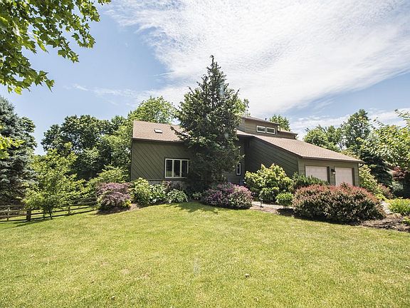 If you have been waiting for a super house located in a great area with lots of space, curb appeal and privacy, here it is. From the charming front deck surrounded by pretty gardens enter into a 2 story Foyer and entrance into a very spacious Living Room with vaulted ceiling, gorgeous newer wide planked Tiger Maple flooring (2011) and ceiling fan. The adjacent Dining Room shares the same Tiger Maple flooring, the high ceiling and can accomodate a normal dining room table or an immense one. The two rooms together suggest a Great Room feel and is quite versatile with lots of open space. The Hallway leading to the kitchen includes a powder room, double guest closet and entrance to the Lower Level. The large open Kitchen with tile floor, breakfast area and sliders to the back deck overlooks the private back yard. Appliances are: Bosch dishwasher, GE Profile range, GE Profile washer and dryer and "top of the line" super large Samsung Refrigerator (Nov 2017). There is also a built in convection microwave. The long expanse of cabinets has plenty of storage and includes a pantry and a work desk. The convenient Laundry Room is right off the kitchen with access to the 2 car garage. The open Family Room has a floor to ceiling stone fire place with raised hearth, a wood burning stove and sliding glass doors to the same deck shared by the Kitchen. Three nice sized bedrooms are located along a hallway balcony overlooking the Living room. The Hall way and all upstairs bedrooms have brand new carpet (June 2018). The Master bedroom is located at end of the Hall with a large walk in closet and it's own private bathroom with double sinks, skylight, whirlpool tub and a large enclosed glass shower with new glass door and recently replaced shower pan.(June 2018).There is a full Hall Bath with skylight and double sinks and a linen closet in the same hallway. The Lower Level has a spacious Walkout Basement, is partially finished and opens onto a newly refurbished deck. The unfinished portion of the basement is very large with tons of storage and a work area. Other amenities include: New Roof (2015), Newer Propane Furnace with "Air Scrubber" and April Air humidifier (2017),Well Pump and holding tank,(2015),etc. Active friendly neighborhood, many social events, walking, jogging, progressive dinners, Block parties, etc. Convenient to Rt 100,PA turnpike, 401, 30 and R5 train.