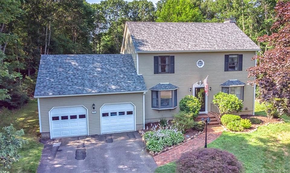 Beautifully maintained this center hall colonial is ready to move right into. A classic design with 3 bedrooms and 2.1 baths has a formal living room with fireplace, formal dining room, spacious kitchen with large and bright informal dining area with new sky lights and walks to the beautiful deck and gazebo where you can enjoy the beautiful gardens of the back yard. A large family room with french doors has vaulted ceilings, mini-split air conditioning and a large closet. Garage can be accessed through both the kitchen and family room. The second floor has a spacious master bedroom suite with full bath and walk in closet. A common full bath and two additional bedrooms complete the second floor. The .94 acre lot is private, level and located on a cul-de-sac in one of the prettiest parts of Stafford. Just a few of the many updates to this home are, new roof, new skylights, new gutters, exterior of the home is freshly painted, underground drainage around the entire home, new retaining wall near the walk out basement door, new drilled well and filtration system, new modern dry-well, chimney was repointed, and much more Conveniently located close to Staffordville Lake, and I84 for a quick commute to Hartford, Sturbridge and Boston.