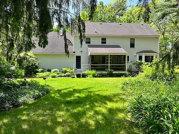 Timeless center entrance colonial surrounded by perennial gardens and unique exceptional trees. Fresh exterior painting, updated kitchen and baths, hardwood maple and oak floors throughout 1st and 2nd floors. Plenty of space for a home office or playroom. Easy expansion possibilities with full staircase to attic and possible dormer over garage from MBR for a quiet sanctuary.