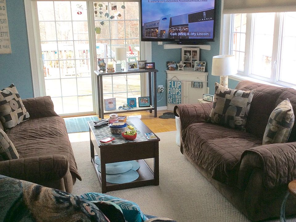 Serene Jersey Shore home! This delightful home boasts beautiful colors and amazing craftsmanship. Home is located in the desirable Scott Estates area of Bayville. This home is lined with an amazing curb appeal starting off with a fishpond stocked with Koi and concludes with a private backyard with access to Mill Creek and pool. A deck built for entertaining or just enjoying the peaceful outdoors. Included amenities: Hardwood floors, a garage complete with 2 ceiling fans and a custom built work bench. Easy to convert in to a play room or your very own man cave. An open kitchen with cherry wood cabinets and a great view of the backyard. You really have to visit this home to truly appreciate how amazing this home is. Front yard boasts a manicured lawn with in-ground sprinkler, a fishpond (Koi not included in sale), and pavers leading to front entrance. There is a Skuttle Home Humidifier that works with the central heating system. Separate laundry room with cabinets for storage. Washer and Dryer included in sale. Garage has a workbench and can easily be converted into a man-cave. There is an additional refrigerator and a garage door opener.