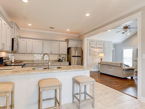 - Kitchen Features: Dishwasher, Microwave, Range, Work Island, Refrigerator, Granite Counter Tops