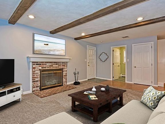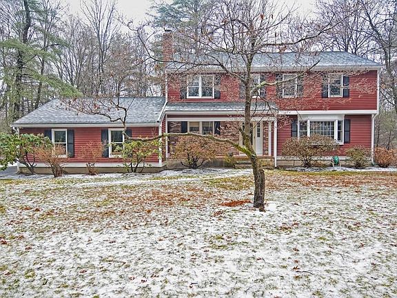 Classic 4 Bedroom, 2.5 Bathroom Garrison Colonial on 1-acre private setting at the end of a cul de sac! New carpet and freshly painted in many rooms. Spacious living room has beautiful hardwood floors, large bay window and sconces. Family room with fireplace, beamed ceilings and new carpet. Fabulous open kitchen with island, lots of cabinets, built-in desk, pantry and large, versatile breakfast room & sitting area with dramatic cathedral ceiling, skylights and ceiling fan with slider to deck and yard. New carpeting in all bedrooms and updated baths. Master with 2 closets and updated bathroom. Partially finished walkout basement could easily be carpeted for playroom with additional 400+ sq ft of living space. Convenient mudroom with tile floor, bench w/storage and double closets. Large yard, charming front porch and 2-car garage. Ideal commuting location, just minutes to the Route 9, the Mass Pike, 495 and the Commuter Rail.