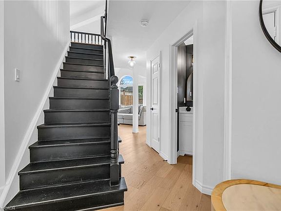 Welcome to this stunning, fully renovated home nestled in the heart of Clairfields, one of Guelph’s most sought-after neighbourhoods! Thoughtfully updated from top to bottom, this detached gem features 3 spacious bedrooms, 3 stylish bathrooms, and a rare double car garage. Inside, you’ll find a modern, chic colour palette, carpet-free living, and hardwood floors throughout. The sun-filled living area is enhanced by oversized arched windows and vaulted ceilings, creating a bright and airy space. The upgraded kitchen is equipped with stainless steel appliances, ample cabinetry, and a cozy eat-in area that walks out to your oversized new deck, ideal for hosting friends and family. The finished basement offers even more living space, including a large rec room, modern full bath, laundry area, and versatile layout, perfect for a guest suite, home office, or media room. The private fenced backyard is beautifully landscaped and ready for summer enjoyment. Conveniently located, you’ll have endless retail, dining, and entertainment options at your fingertips. Preservation Park is just a short walk away, offering endless acres of scenic trails for walking, biking, and enjoying nature. Plus, you’re just minutes from Highway 401, making commuting a breeze. Move-in ready and packed with value - this is one you don’t want to miss!