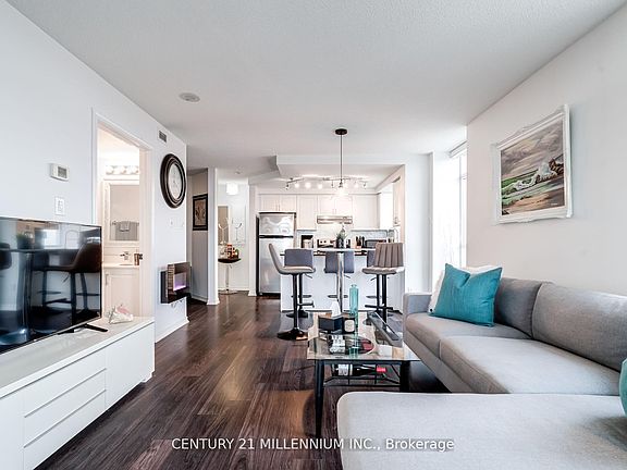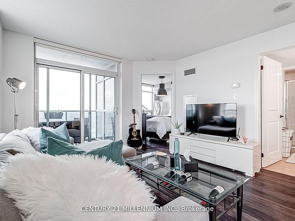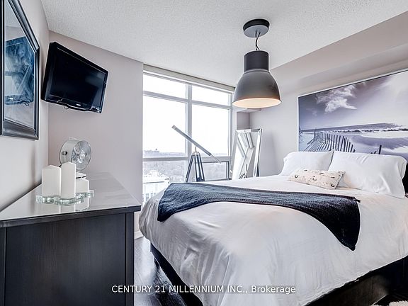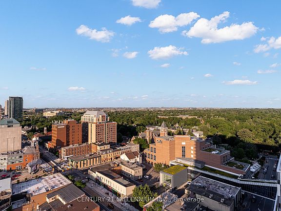 Fabulous, sun filled, open concept south east facing corner unit with panoramic views of Downtown Brampton, and Toronto/Mississauga skylines. Much sought after Renaissance building right in the core of our Downtown. Fantastic walk score, everything is within walking distance, restaurants, cafes, shopping, The Rose Theatre, the GO Train, Bus terminal, Garden Square, Farmer's Market, skating at Gage Park, places of worship and easy access to major highways. Well run condominium complex with good neighbours, 24hr. concierge, indoor pool, sauna, gym, yoga studio, party room, library, guest suite, huge outdoor terrace with BBQs, visitor parking, owned space and owned locker. Outstanding unit with glass railing balcony. Espresso finish laminate flooring throughout , floor to ceiling windows. Modern Kitchen with ample white cabinetry, dark contrasting quartz counters, breakfast bar, backsplash, stainless steel appliances and large window view over sinks. Combination living & dining room with walk-out to the balcony. Spacious primary bedroom with large modern chandelier and large walk-in clothes closet with organizers. Open concept Den that can serve as a second bedroom and/or home office. Spacious bath with separate shower stall/rain showerhead. Large foyer / hallway with built-in coat closet, insuite laundry, washer and dryer! Finished in a neutral palette throughout. Truly the the best of locations is offered with this newer building in Historic Downtown Brampton with all the conveniences and perks it has to offer. Ready move in condition, shows 10 +