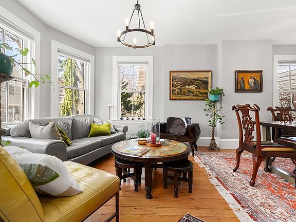 Located on a picturesque side street in West Cambridge, this updated home is just a stone's throw from the Charles River, parks, and historic sites. Through the 19' entry hall, the living room has a bay window and is open to the dining room. The eat-in kitchen offers stainless steel appliances, stone countertops, upgraded cabinets, and tile backsplash. The primary bedroom provides two closets. There is an additional bedroom and a hall bathroom on this floor as well, plus a back door to the driveway. The finished lower level houses the massive family room with a fireplace, third bedroom with a double closet, full bathroom, and a laundry room. Amenities of the condo include central heat & air conditioning, a Navien tankless hot water heater, Harvey windows, Roxul soundproofing, and deeded parking. Living here offers easy access to Mount Auburn Hospital, riverfront parks, and Harvard Sq. Just across the river from Harvard Business School and exciting developments in Lower Allston.