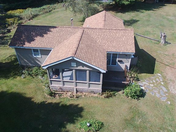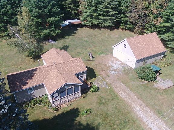 Easy maintenance one bedroom home in peaceful quiet setting with a 2 car garage providing plenty of storage. This home has been used year round or would be an excellent seasonal getaway. 1+1/2 baths for convenience and multiple heat sources which can be tailored to your needs. Exceptional lot sprinkled with fruit, Pine and Spruce trees with multiple trails throughout the property. A large yard provides space for multiple gardens or family outings.