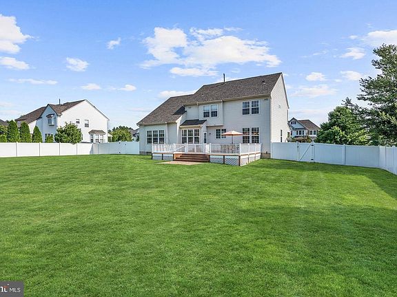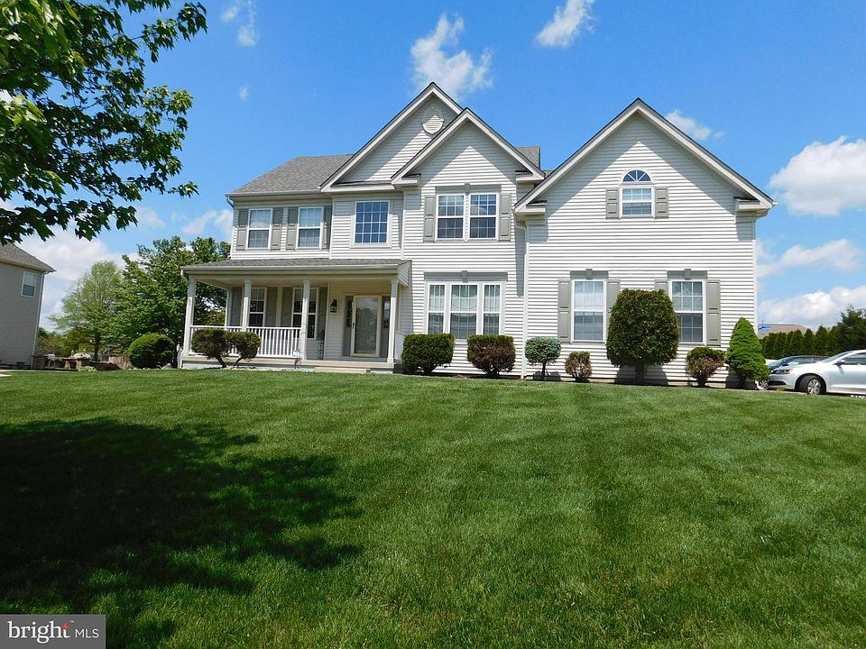 This well maintained, move-in ready home at Lumberton's Coventry Glen features 2 story foyer with beaming hardwood floors throughout the formal living and dining rooms, and office. First floor has been freshly painted and some of its amenities are the crown molding, wainscoting, turning staircase with an additional staircase in the 2 story family room with ceiling fan. The eat-in kitchen has granite counters with island, tiled back splash, newer stainless appliances with a gas range. The finished basement is great for everyone. There is a full bathroom with a double vanity sink adjoining a spacious SOUNDPROOF BONUS ROOM that could be also used as an In-Law Suite. Also, basement has entertainment section and storage area with shelving. The upstairs has 4 spacious bedrooms with plenty of closet space and a loft with a built-in desk at the top of the back staircase. The freshly painted Master bedroom has huge sitting area with beaming hardwood floors adjoining the carpeted bedroom with tray ceiling. The master bathroom has soaking tub, separate shower stall, double sink vanity, skylight and palladium window to let in all the natural light. The yard is perfect for anyone that loves to entertain outside. Backyard has a lush,green, level lawn with a vinyl fence with a maintenance FREE trek deck, the width of the home. Don't wait to make an appointment to view this home because it is sure to go quickly in this market and NEW RATES.