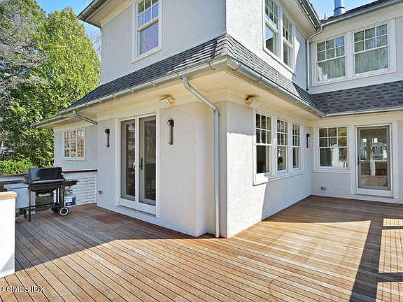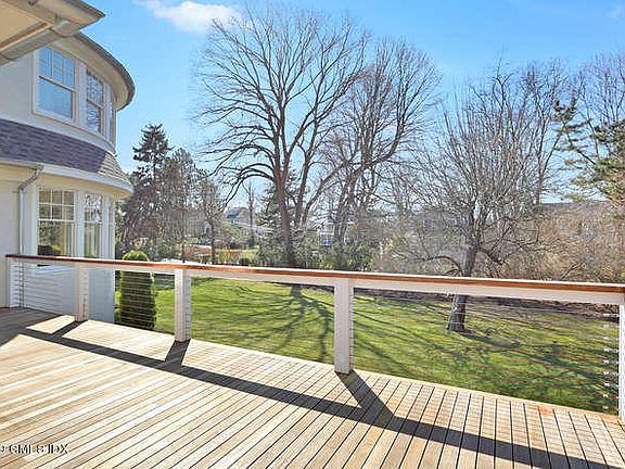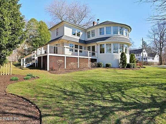 20's colonial updated in 2010 with wrap around deck and winter water views on a coveted street just a short stroll to Riverside Yacht Club, close to schools and train. Spacious family room with a wall of beautiful windows and fireplace which adjoins a gourmet kitchen featuring large island, high-end cabinetry and appliances, as well as a eat-in area. Welcoming formal living room with fireplace and dining room plus large office/mud room and powder room complete the first floor. Master bedroom features the same wall of wrap around windows, his and her walk-in closets and well appointed master bath with double vanities, separate shower and whirl tub. Three other bedrooms on this level with two more full baths one en suite. Professional landscaping oversize lot for play or entertaining.