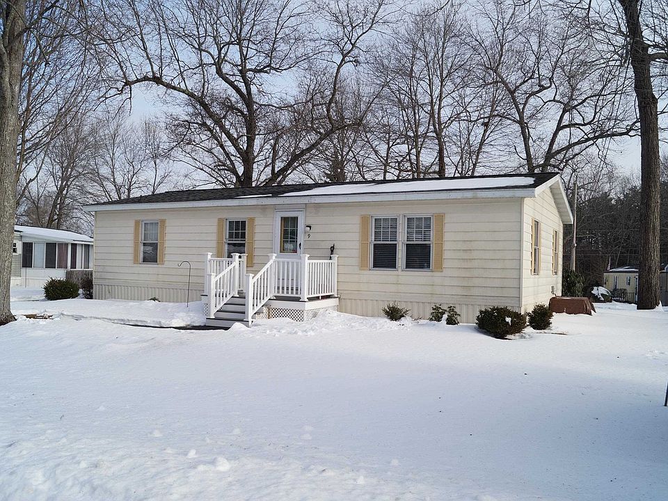 Walk into this double wide mobile and feel like you just entered a custom-built ranch! Walls are drywalled, ceilings are plaster, all doors are white raised panel, with colonial trim. Now notice the Large Vaulted Living Rm, Upgraded kitchen cabinets with vaulted ceiling and Dining area. Master Bedroom has new carpet and its own updated bath. 2nd Bedroom is almost as large, with a full bath in hallway. You also could spend hours in the enclosed back porch overlooking semi-private backyard. Quality Shed. BRAND NEW UPGRADES: Central air system $5500, NEW front porch with trek decking and vinyl rails, NEW back door. So many MORE upgrades over the years, check out the feature sheet under documents. Emerson Village is a 55+ park, club house and outdoor pool. Cats allowed