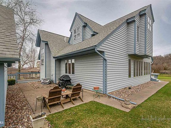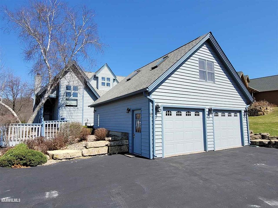 Sit back, relax and enjoy the absolutely breathtaking panoramas of the golf course and beautiful treed ridges beyond from this immaculately-kept 3 bed/2 bath Galena Territory retreat perched above hole #11 of Eagle Ridge South Golf Course and offering a functional layout, many updates/upgrades, plenty of outdoor spaces to enjoy, and an impressive detached two car garage with finished recreation room above. Main level features open and airy great room style living area with fireplace, separate dining area, updated kitchen with stainless appliances, granite counters, center island and tile backsplash, inviting sunroom/family room with lots of windows and natural light, and spacious master bedroom offering adjoining private bath with vanity, whirlpool tub, shower, and additional water closet with separate vanity that can be closed off to serve as a half bath for the main floor. Ascend to the upper level to find a warm and cozy loft area overlooking the great room perfect for an office or additional family room space, two generous guest bedrooms with vaulted ceilings (both with alcoves, one of which houses a beautiful built-in bookcase), and a nicely appointed full bath with tile floors. Take in the amazing views and unwind in the outdoors from the rear deck with built-in bench seating or private concrete patio to front. Detached two car garage is clean as a whistle, has space for work area, and offers a lodge-like feel with wood clad ceilings and walls and can be utilized for vehicles or additional entertaining space. The upper level of the garage also boasts a finished recreation room/bonus room (300+/- square feet) with skylights, more wood-clad, and its own electric wall heat/air conditioning unit. Sold furnished with some exclusions to be negotiated via a separate bill of sale. Some updates include asphalt drive with concrete borders redone in 2009, updated furnace (2017), exterior of home painted (2019), stained and cleaned front walkway and deck (2019), ceramic tile in entry and both baths (2011), flooring in living room (2019), updated flooring in loft and upstairs bedrooms (2011), and much more! Square footage is approximate.