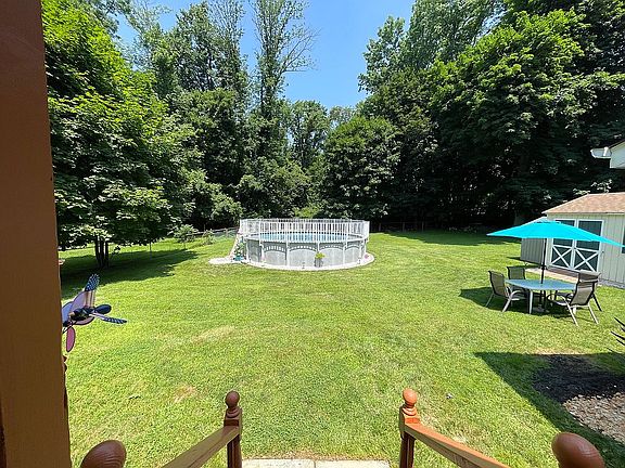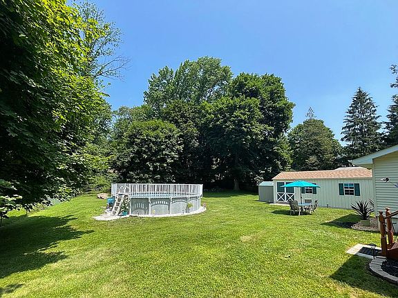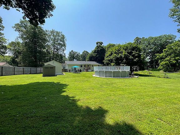 Awesome Ranch nestled on 1 acre private level lot with pool in quiet neighborhood! Move right into this 3 bedroom, living room, dining room, eat-in kitchen, family room with sliders to fenced yard. Huge walkout basement with high ceilings can be finished for more living space. Updates include: Brand new roof 7/21, city sewer, above ground Roth oil tank in basement, new pool, new well pump and tank. Come relax in your beautiful home with a gorgeous private yard and pool with low taxes. Conveniently located to major highways, trains, shopping, lake and award winning schools. Quick closing available! Great home, lot, condition & price!
