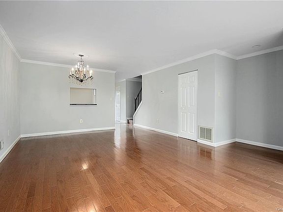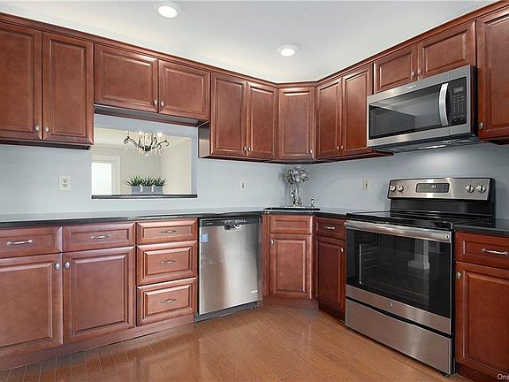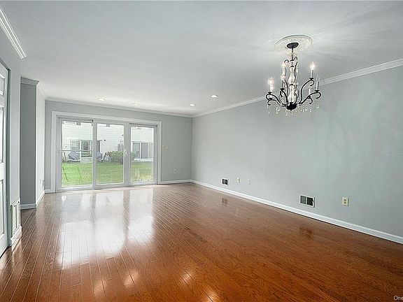 Welcome home to a beautifully updated 2 bedroom 2 1/2 bathroom town house with all hardwood floors, custom kitchen with gorgeous granite counters, a pass thru window that also has a view into the living and dining areas and through to the large glass sliding doors that leads to the deck/patio has a view of the grassy yard. Spacious living room and dining room combination has sliders leading to rear patio. Stair case to 2nd floor is hardwood with a contemporary handrail design. Both bedrooms are on the second floor and have hardwood floors and both have own private bath, one has a tub and the other has a walk in shower with no step. The washer and dryer are conveniently located on the second floor. The community offers pool, club house, playground and tennis and basket ball courts. Enjoy living with no more snow shoveling, no landscape jobs as the HOA takes care of the exterior maintenance. Close to village shops, schools, New York International Airport, Woodbury Commons, just 25 minutes from Crystal Run, Touro Medical College, and Northern NJ.