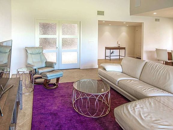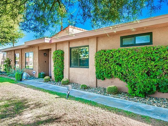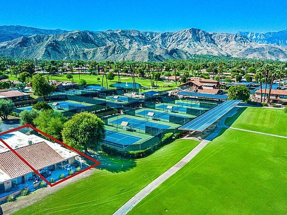 Location! Location! This centrally located tennis villa condo is in the best location in the entire development. Enjoy stupendous mountain views to the North and West while overlooking the 10th fairway, tennis court 5 and magnificent palm trees. We have two very close pools and one of the only units walking to everything Sunrise Country Club has to offer. Enjoy 9 tennis, 10 pickelball, 2 sand bocce ball, 18-hole golf, 20 pools and spas, free driving range, large fitness area, dining, bar and separate grill. SCC is located one block from The River, Rancho Mirage Community Park and Eisenhower Medical. This condo features ultra high-end Miele appliances including a built-in coffee maker, fridge, oven & microwave. Smart thermostat, touchless kitchen faucet, hot and cold filtered water, newer kitchen and bath cabinets. High end electrical and plumbing fixtures throughout, vaulted ceiling, lots of storage. The unit is perfectly situated in that it's private only 1 neighbor, west facing which avoids strong heat during the day. A wonderfully peaceful shaded outdoor patio awaits your quiet afternoons with breathtaking views. Owning here gives you an HOA with free driving range, tennis, pickle, bocce, ping pong, library, studio, fitness, cable TV, internet, garbage/recycle, exterior roof, siding, paint, landscaping, mgmt etc.. Sleeps up to 8 people. Furniture is negotiable. Appraised at 700K walk-in equity. Too much to list.