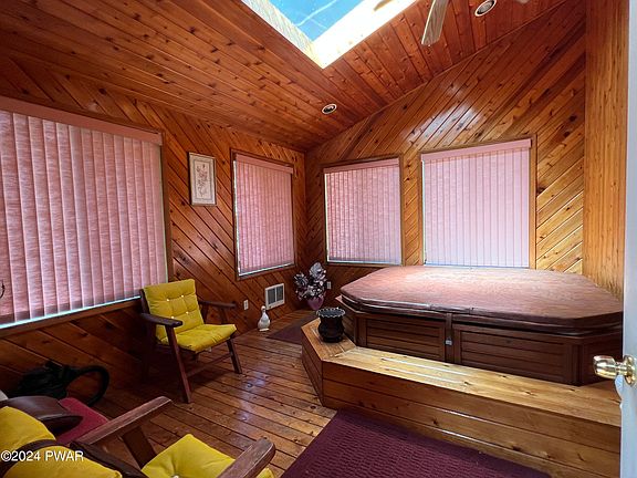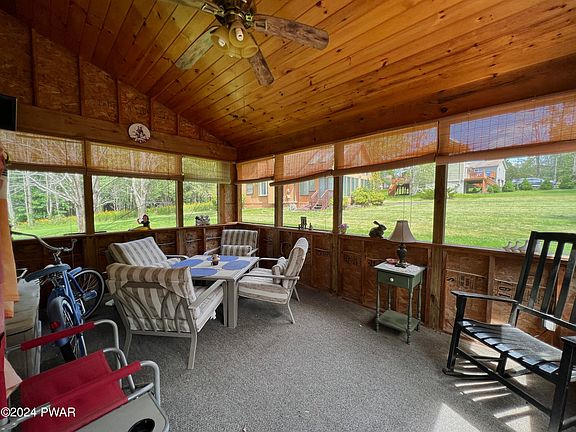 Welcome to the perfect getaway in The Hideout! With a screened in porch, large back yard, and a tongue and groove hot tub room, what is not to love? Outside you will enjoy a wrap around driveway, with easy access to your storage shed. The large front deck leads into the nice airy screened in porch with tongue and groove ceilings. This is a perfect spot to relax or to eat dinner! Going inside, you will find a sunroom that leads into a dining room/family area. There is an open concept kitchen and living room, complete with a wood burning fireplace. The main floor has two bedrooms and 1 full bathroom. Upstairs, you will find a multi purpose loft, 1 bedrooms, and a 1/2 bath with laundry. This house has so many great areas to enjoy inside and out! Come take a look at it today. Located in an amenity filled community, you will get to enjoy year round activities including motor boating on Roamingwood Lake, golf, art/woodworking centers, and a ski hill in the Winter.