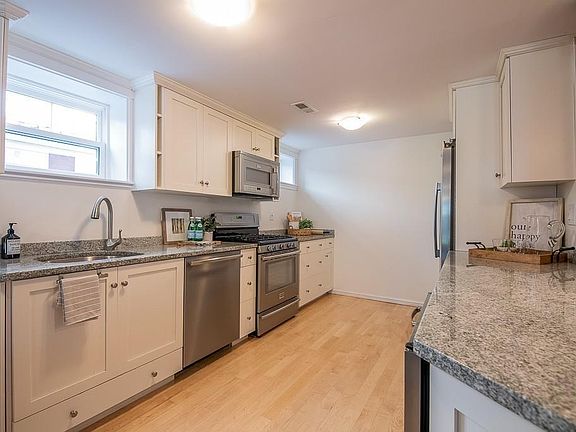 Stunning Somerville condo in an amazing location with NO condo fee! Close to all that Somerville has to offer including, the Porter T-stop, restaurants, and I-93. Open concept with plenty of space for entertaining and more. On the first floor, the modern kitchen is equipped with stainless steel appliances, breakfast bar, lots of cabinet storage, and granite countertops. Private full bathroom also on the first floor! Upstairs you'll find the master bedroom with multiple closets, two additional bedrooms, shared full bath, and in-unit laundry! Beautiful hardwood floors throughout. Enjoy your time on the private back deck, or in the fenced yard. Keep your car safe from the elements with your private garage space! Yard space is exclusive to the unit, and the yard will be freshly sodded prior to closing!