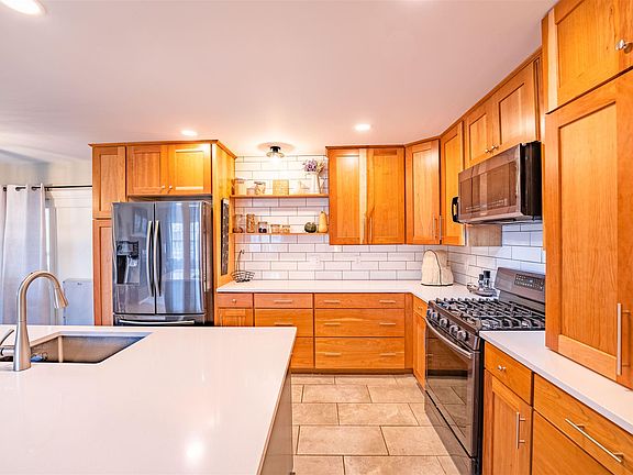 Elegantly cozy charm awaits at this modern raised-ranch in Jericho. Boasting gorgeous flooring on each level, tasteful and freshly painted walls, and an abundance of sunlight throughout, this home is move-in ready! The open layout of the kitchen and living room makes for an especially comfortable and convenient central spot in the home. Stainless steel appliances, white tile backsplash, and modern cabinetry add an extra level of sophistication to this kitchen. Nearby, the brick-lined fireplace ensures everyone will be especially cozy in the colder months. The fully-finished basement offers so much room for entertainment, work, and storage. The two-car garage is remarkably spacious. The backyard is fully fenced, backed by the privacy of lush woods, and offers raised garden beds and a firepit! So much fun potential for harvesting your own vegetables, barbequing in the summer, roasting marshmallows in the evening, and building snowmen in the winter! In the heart of Jericho just a short walk from: the elementary school, Jericho Cafe, Palmer Lane Maple, an easy drive to I89, nearby trails, this property is a must-see!