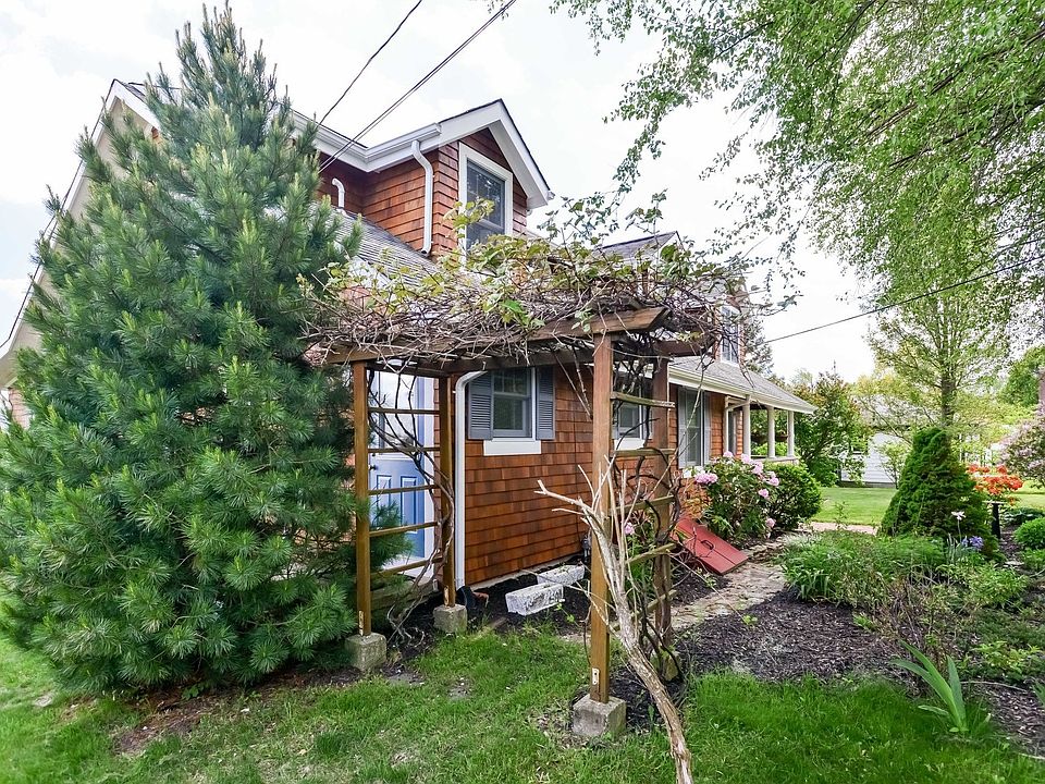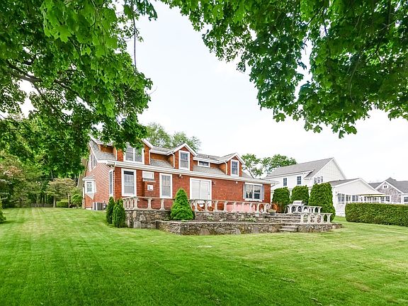 This "Enchanted" Shingle & Stone Cottage sits on a beautiful waterfront lot in Barrington, RI. This beautiful "story book" home feature rich wood floors, French doors & a graceful staircase. Classic pilasters and dental moulding frame the wide openings between the "living hall" and large dining room with its built-in pediment corner cabinet and impressive crystal chandelier. The eat-in cook's kitchen exudes the character of this special place. For entertainment there is also a special recreation room with tin ceiling & wet bar. A cozy fireplaced den has a natural varnished bead board ceiling....sea views out of every window. The home features other amenities including an office-library and laundry room on the first floor and wine cellar on the lower level. To complete the first floor is an ensuite master bedroom with natural bead board ceilings. The bath sports cottage wainscoting, Jacuzzi tub and pedestal sink. Another full bath on the first floor contains wainscoting and an attractive pedestal footed tub shower combination. The second floor has 2 larger bedrooms, with sweeping water views and one guest room a full bath and 1/2 bath. Step out the French doors to the masonry terrace to truly enjoy the spectacular waterfront location. The stone terrace is surrounded by an elegant masonry balustrade recalling long ago past. An easy stone staircase takes you and your guests comfortably to the calm water's edge - the ultimate serenity.