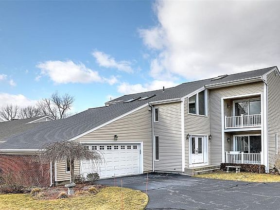 Beautiful townhome unit with stunning westerly water views and multiple decks to enjoy the sunsets. Sunfilled interior with hardwood floors and cathederal ceilings, Both the living and dining room have water views with sliders to the decks. Sunbrella remote controlled retractable awning provides shade on hot summer days. Spacious eat in kitchen with granite and stainless appliances. Bonus den/office and half bath. First level has a spacious primary bedroom with ensuite bath, huge walk-in closet and sliders to a private patio. Second bedroom has a slider to small private deck. Washer and dryer located between the 2 bedrooms. Other features include huge unfinished basement, 2 car garage and inground sprinklers. Just a short walk to the bike path and access to the water make this home a winner.