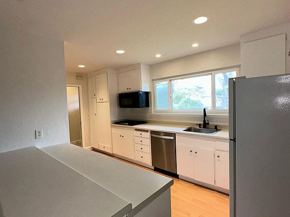 Discover your new dream home with approximately 2,250 square feet of living space. This stunning residence boasts fresh interior paint, an open floor plan, and updated bathrooms featuring custom tile work. Several new energy-efficient windows (on order) and French doors flood the home with natural light, leading to an expansive deck in the large, private backyard. Enjoy the serene atmosphere with mature landscaping and beautiful oak trees providing extreme privacy. Main level 3 bedrooms/2 bathroom. The spacious living room/dining room combination features modern recessed ceiling lights in kitchen and dining areas, hardwood floors in kitchen, and a cozy custom fireplace. The kitchen is a chef's delight with ample cabinet and drawer space, new stainless steel appliances, a double oven, refrigerator, microwave, and gas range(on order). Additionally, there is a breakfast bar and nook for casual dining. Upstairs 1 bedroom/1 bathroom + bonus room. Offers a primary suite which boasts a second deck for your private relaxation. Additionally, there is a loft-style family/bonus room for many uses. Additional features include a large laundry/utility room with a washer and dryer. Upper level air conditioner only. You'll also find a built-in double-desk and cabinets for added convenience. a 2-car garage. Located within walking distance to schools and open spaces, this non-smoking property offers lawn service for your convenience. Please note, no pets are allowed. Make this beautiful home yours and enjoy the perfect blend of comfort and style! Lawn service included. This is a non-smoking property. Available March 1st ! 12-24 month lease term. 2-year lease term preferred. DRE #01351735 Single Family Home