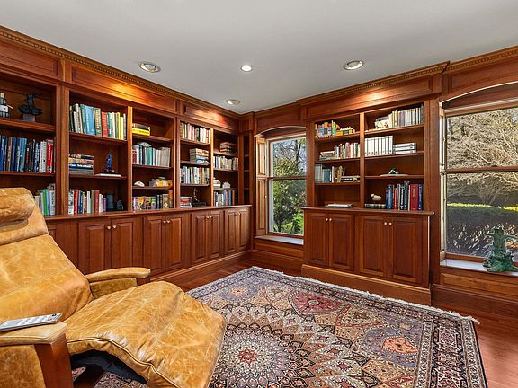 Discover the unexpected, a mini-estate nestled behind stone walls, surrounded by mature plantings and lush, professionally designed gardens. Set on 1.8 acres, the grounds feature a stone patio, in-ground gunite pool, and picturesque vistas that make every season feel like a retreat. At the heart of this stunning property is an oversized custom-built, thoughtfully designed, brick Cape. From solid 6-panel doors and soaring ceilings to sunlit, spacious rooms, timeless craftsmanship was clearly a priority. The kitchen, centered around a massive island will impress any chef, with newer stainless appliances - induction cooktop, double wall oven, and a wet bar. A cozy sunroom just off the kitchen offers scenic views of the grounds, perfect for morning coffee or evening unwinding. Nearby, a mudroom, laundry area, and half bath offer practicality, and the attached garage includes an EV charger. Enjoy cozy nights by the gas fireplace in the family room, or entertain in the formal dining room and elegant living room with wood-burning fireplace and oversized bay window overlooking the pool and gardens. The library with custom built-ins adds a sophisticated touch. The primary suite is a spa-inspired retreat with en suite bath, oversized tiled shower, double vanities, and radiant heated floors. An additional bedroom and full bath are on the first floor. Upstairs, are 3 more large bedrooms, and full bath. A finished lower level offers a 3/4 bath and recreation room.