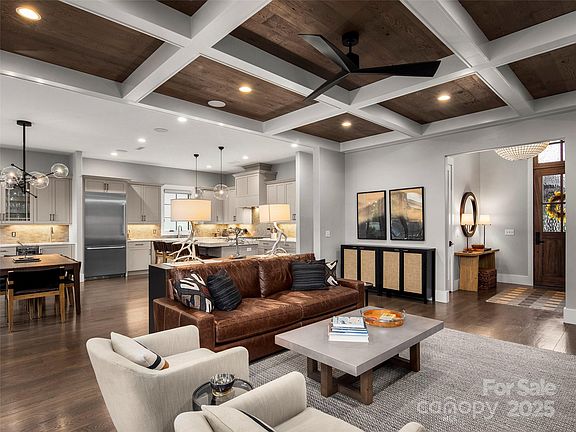 Bathed in natural light with breathtaking mountain views, this elegant one-level residence in the exclusive private gated community of The Cliffs at Walnut Cove offers refined luxury and easy living. Spanning over 2,300 sq ft, it features 3 bedrooms, 3.5 baths, and a flowing open plan with 10-foot coffered ceilings and custom 6-inch oak floors. The gourmet kitchen is outfitted with quartz countertops, Thermador appliances, and a Wi-Fi-enabled range with gas cooktop. A striking stone fireplace and floating custom shelves anchor the living space, enhanced by Restoration Hardware lighting, and a state-of-the-art Sonos sound system perfects your main level entertaining space. The serene primary suite boasts heated bathroom floor, walk-in shower, California Closets, and beautiful bespoke cabinetry. The professionally landscaped grounds are maintained by the HOA, providing maintenance-free peace of mind. The only thing missing that completes this exquisite home is you! Membership Available.